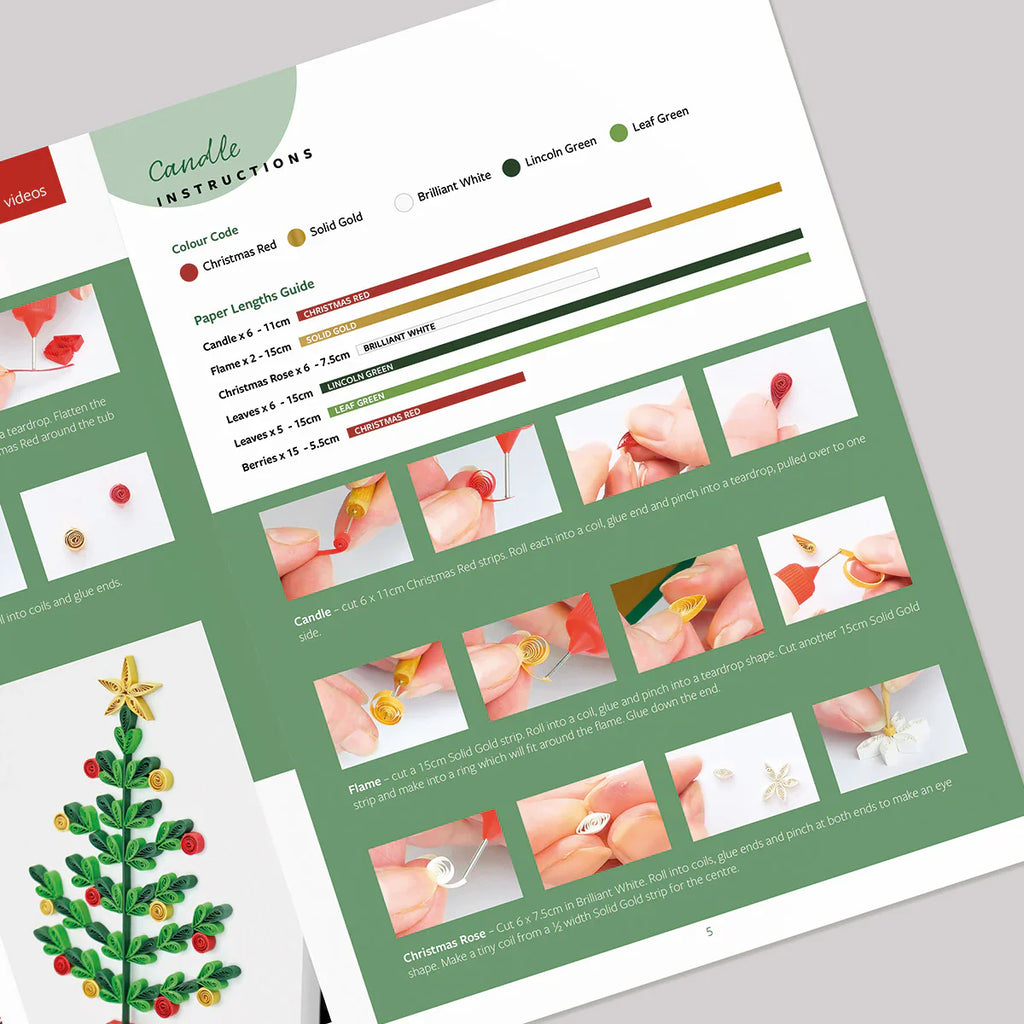 The easy-to-follow instructions have the quilling strip lengths laid out ready to measure against so all you have to do is follow along and watch your miniature quilled artwork come to life!