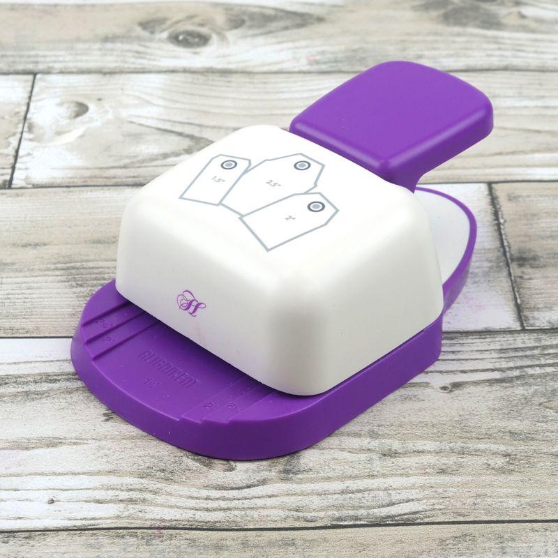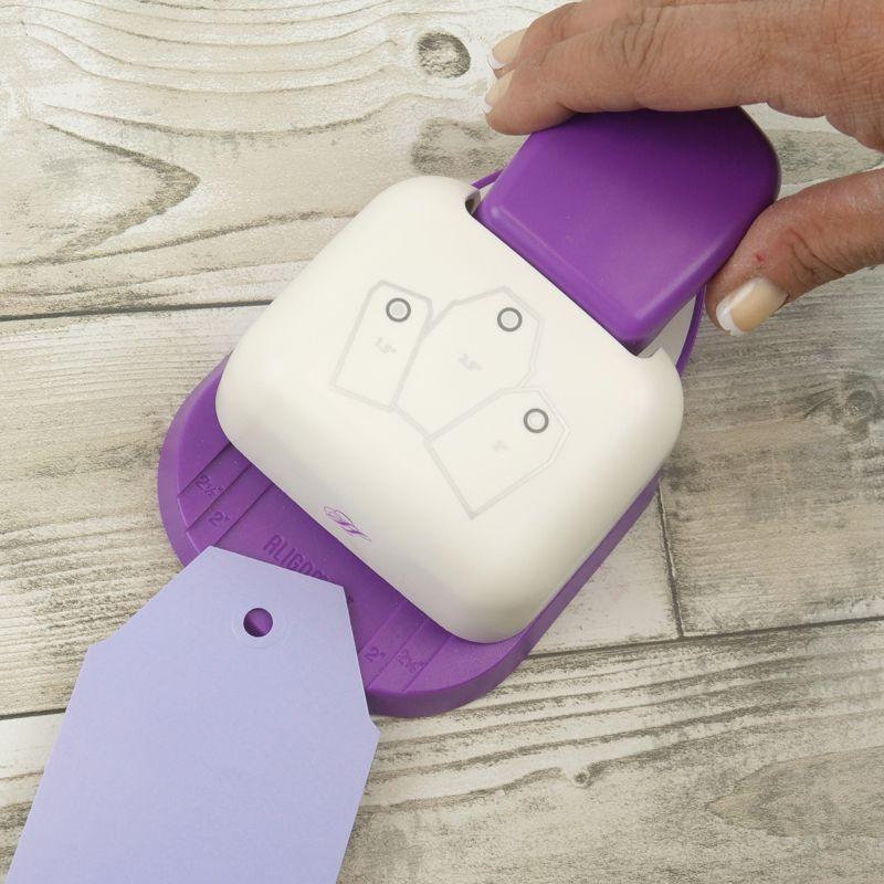 Able to cut three different sizes of tags; 1.5, 2 and 2.5 inches, this handy tool is a fantastic addition to your craft stash. Easy and simple, it can be used for a huge variety of designs with its ability to easily punch out large straight edge tags for beautiful designs.